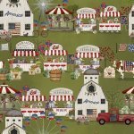 Nothing says Hometown like a collection of fabrics that displays beloved Americana barns, flower stands and everything you'd expect at a County fair in the warmth of summer. And the cherry on top is having Uncle Sam and good Ol' Bessy lead the parade flying high the American Flag!